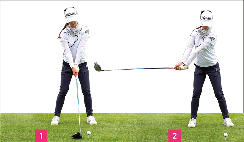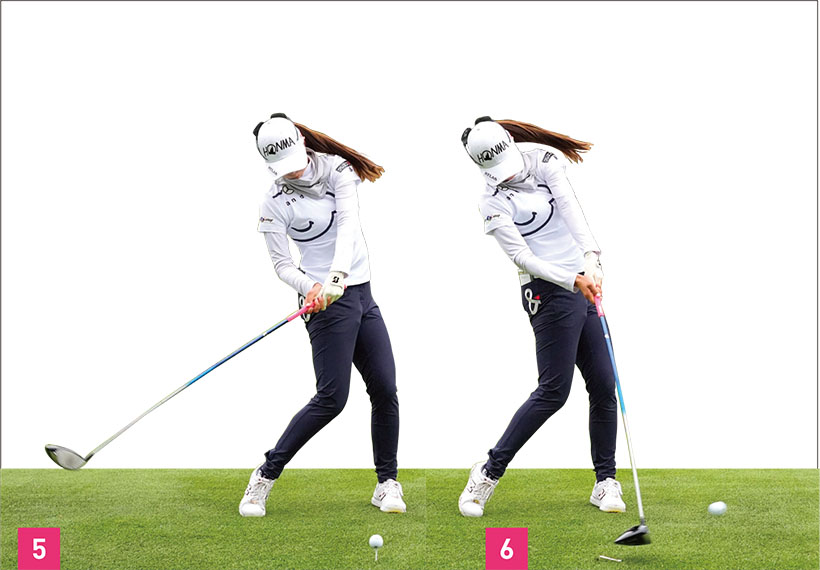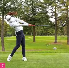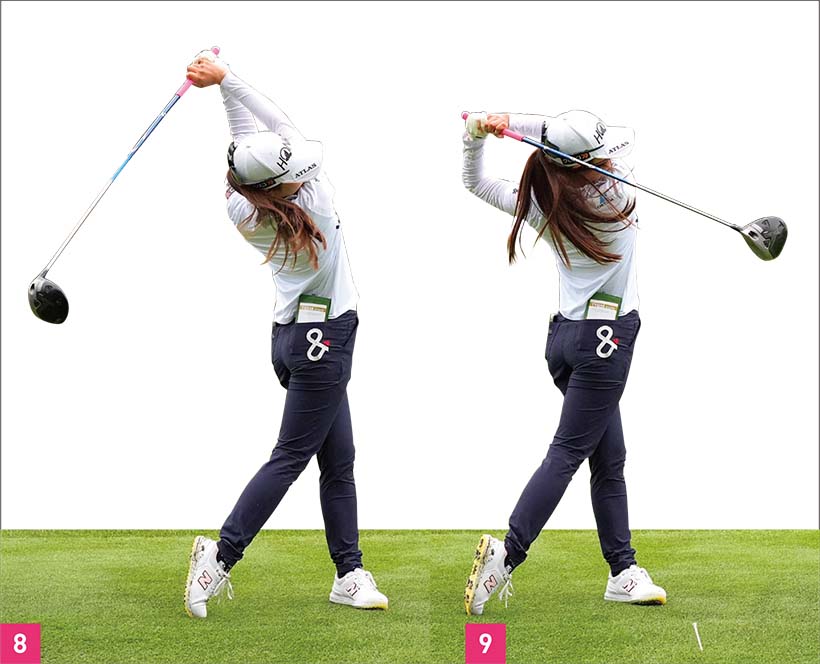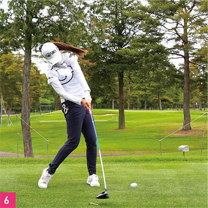 しなやかに飛ばすヒミツは、頭が右に動きながらクラブを振り抜いて遠心力MAXで飛ばす