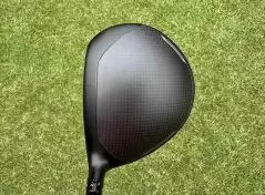 構えてみると少し丸目のヘッド形状で、フェース面は真っすぐ。クラウンがカーボン模様となっていて、マットブラックのヘッドは460ccながら少し締まって見えますね。少しコントロール性を感じるヘッド形状だと思います。