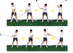「目標」を意識した胸が開いたスライスが出そうなスイングが…