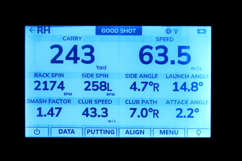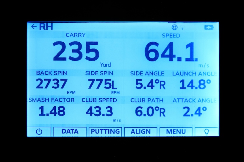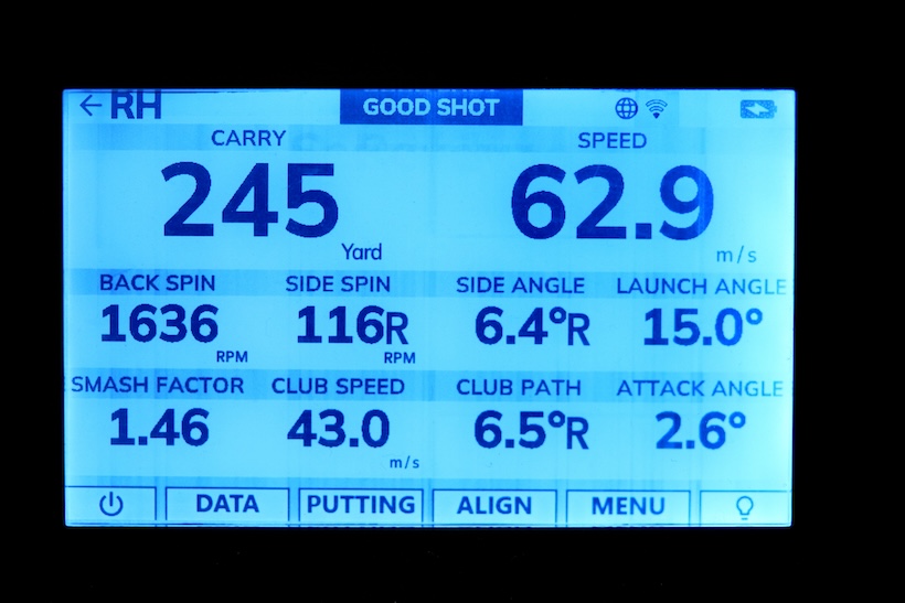 そして、以下に記載したのが清水大成による試打デモンストレーション時のトラックマンで測定したデータの一例だ。