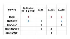 一方、BX1STは「超えたかも」が1名、「同じくらい」が1名という結果となった。