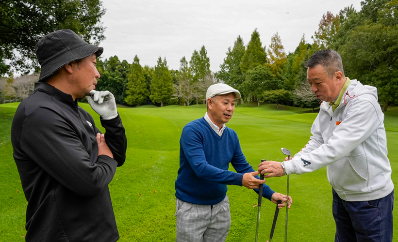 三瓶氏が日本人ゴルファーのためにこだわり抜いた「UPPARウェッジ」3タイプを、編集部員とギアライターが実際にコースで試打を行った。
