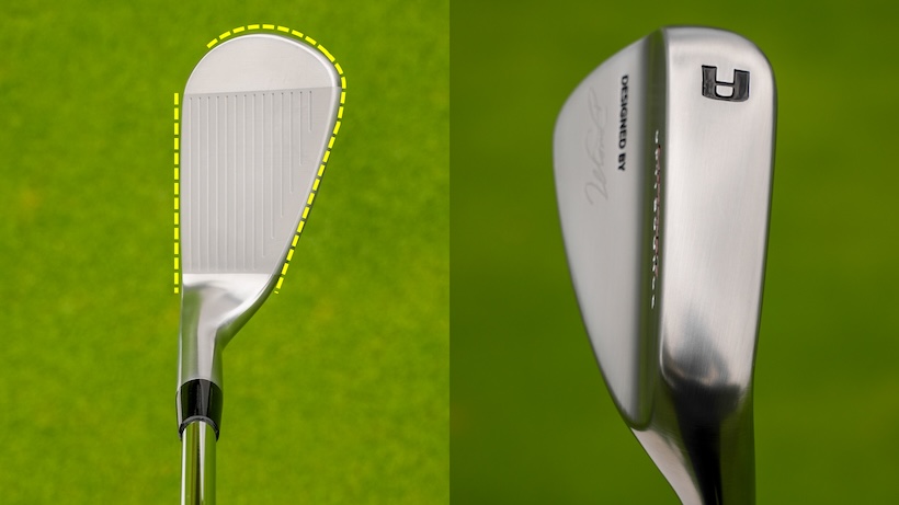 三瓶 AWはアイアンに近い形状で、スクエアに構えやすいストレートなリーディングエッジとフェースの輪郭をハッキリと出した和顔。フルショットしやすいソール形状でやや低重心にして、フルショットでは球が上がりやすく、アプローチでは球足を使いやすくしています。