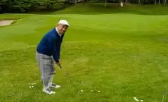 ギアライター 大塚(右)ゴルフ歴37年、平均スコア88。パターでスコアを稼ぐシニアゴルファー。ドライバーヘッドスピード39m/s。
