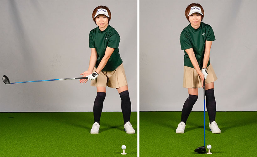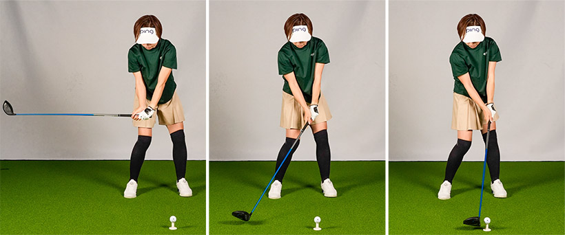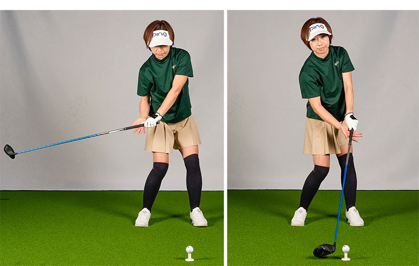 スライスするのは腕が右にネジれたままインパクトするから