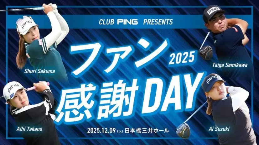当日は、佐久間朱莉、鈴木愛、蟬川泰果をはじめとするPING契約選手19名が登場予定。2025年シーズンを盛り上げた選手たちによる「契約選手トークショー」や、「ツアー選手とのゴルフ対決」、さらには試合では見られない選手たちの素顔や特技を紹介する「選手の素顔&特技大公開」など、多彩なコンテンツが予定されている。