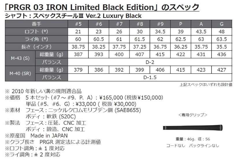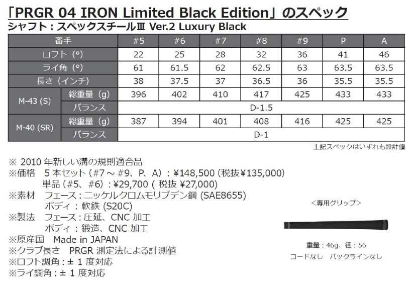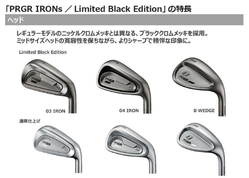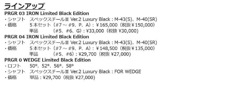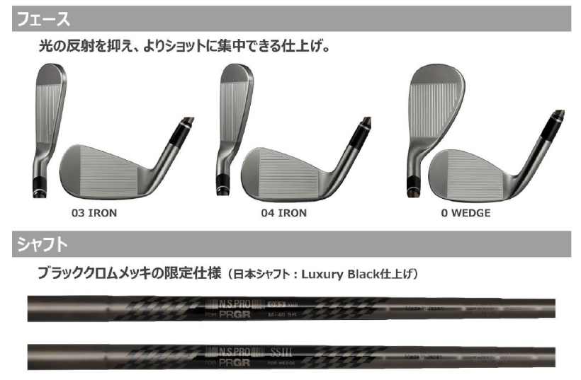 「Limited Black Edition」はそれぞれのクラブ性能はそのままに、ヘッドはブラッククロムメッキで光の反射を抑え、よりショットに集中できるように仕上げたほか、シャフトもブラッククロムメッキ仕様の日本シャフト社製「Luxury Black(ラグジュアリー・ブラック)仕上げ」を採用。レギュラーモデルより力強さを感じられる精悍な見た目を纏った特別仕様のクラブとなっている。
