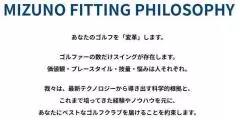 「ゴルファーの数だけスイングが存在し、価値観・プレースタイル・技量・悩みは人それぞれである」という考えの基、独自のフィッティングツールから導き出す科学的根拠と、経験・ノウハウが豊富なフィッターによる診断で、一人一人にベストなクラブを届けることを「MIZUNO FITTING PHILOSOPHY」(ミズノフィッティングフィロソフィー)として掲げている。