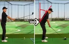 左ワキの締まり感覚をキープするだけで、インパクトでも左ワキが自然に締まってボールをしっかりとらえることができ、ボールを遠くに飛ばせるようになります。