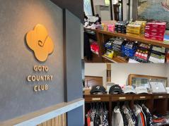 椿をイメージした五島カントリークラブのロゴは、2年ほど前に島民の女性がデザインし一新。ロゴの真ん中がゴルフクラブになっており、おしゃれ。受付の後ろにあるショップでは、ゴルフボールやグローヴ、ウェアやキャップ、スキンケアなども販売されていた。