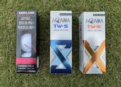 今回僕が試してみたボールは、まずコストコのオリジナルボールの「Kirkland Signature(カークランドシグネチャー)」と本間ゴルフが販売している「TW-X」、「TW-S」の2024年モデルの3種類です。どれもウレタンカバーながら実売価格が1ダース2500円前後で買えるというコスパの良さ。しかし安くても性能が悪ければ意味がありませんからね。ってことで、コースに持ち込んでラウンドで使ってみました。
