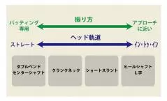 この違いは、シャフトの軸線がヘッドのどこに向いているかの違いと連動している。