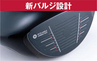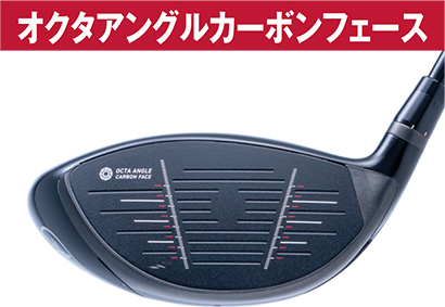 クラウンはもちろんカーボンコンポジット、フェースにはカーボン繊維の流れを8方向に組合せ、強度とたわみで高初速を生み出す「オクタアングルカーボンフェース」を装着。しかも、フェースのバルジを最適化し、ミスヒット時の弾道のブレを抑える設計とインパクト時のボールの滑りを抑える細かな凹凸が施され最適なスピンが得られる。