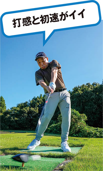 ヘッド体積は450㎤ですが、スイング中のヘッドコントロール性はもっとコンパクトなヘッドのように感じます。スイートエリアの広さは、体積通りの広さでミスヒットをカバーしてくれます。インパクトでのフェースとボールの接触時間が長いので弾道の操作性も高くなっています。球のつかまりはニュートラル、適度な低スピンの強い弾道なので、しっかりと叩いて飛ばせるモデルです。