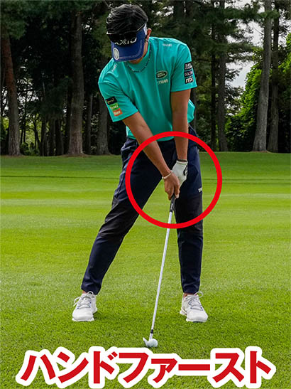 アドレスの段階から極端にハンドファーストに構える人もいますが、手先だけでハンドファーストのインパクトを作ってしまいやすいので避けましょう。