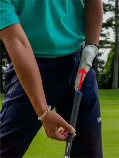 グリップエンドが左股関節を指すようなインパクトをイメージしよう