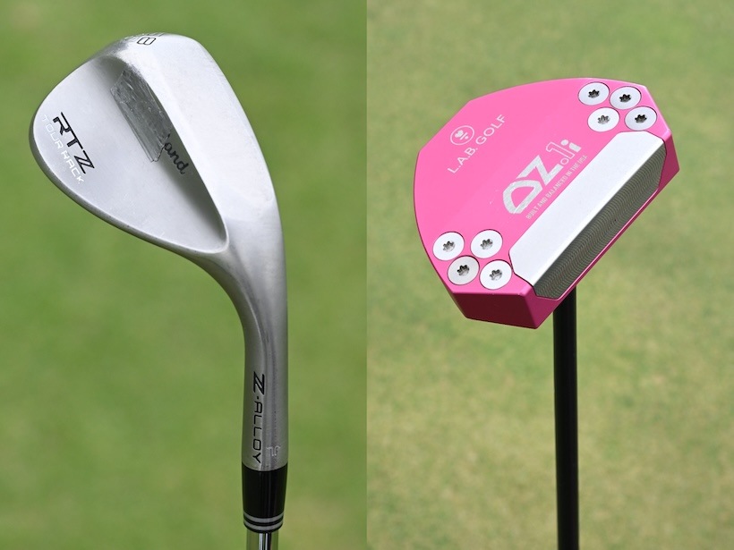ビビッドなピンクのカラーが目立つパターは、海外のツアーでも話題を呼んでいる“ゼロトルク系”をリードするL.A.B.GOLFの「OZ.1i」。ヘッドの座りが良くて、ショートパットではラインさえしっかり読めればほぼ外さないというほど信頼を寄せている。