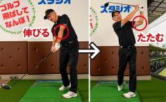 インパクトで左腕が伸びるともっと飛ぶ! ポイントは腰を回し続けること!