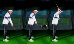 「ヘッドスピードを速くするとしたら、なるべく関節も使いたいんで、イメージ的にはシャフトと地面が平行な高さまできたら、そこからひじ関節使って上に上げる。そうするとひじもフライングエルボーにならない。ひじが締まった状態でクラブを上げられます。切り返し以降はそれの反対で腕を伸ばしながら地面と平行まで下ろして、ヒジが伸びたら素直に振る。こうする 順序的は正しくなる」(内海プロ)