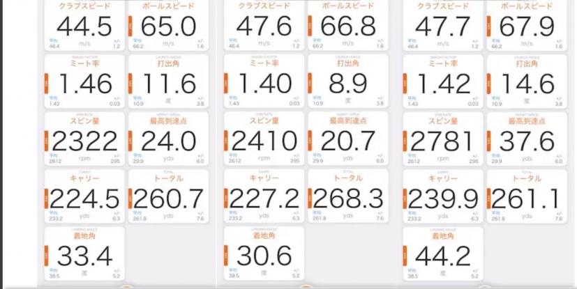 上記しましたように、ローンチモニターの最初の目的は、ナイスショット時の数値の確認です。つまり、この裏を返すと、ナイスショットすればたいがいの人が、世間で言われている理想の数値に近いデータになる、ということなんです!