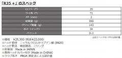 「R35 wedge」は、ピンまでキャリー1、ラン3の割合で打てるように設計されており、プレッシャーのかかるアプローチショットも、パターのストローク感覚で打てるため、アプローチのミスが減り、スコアアップに貢献するアプローチギアとしてロングセラーとなっている。