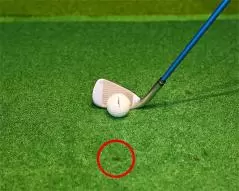 ボールの先に適当な目印を見つけてスパットとし、そこにフェースを向ける人も多いと思いますが、中にはボールの手前にポイントを決めてそれに合わせる人がいます。言うまでもなく、この位置ではスパットの役割を果たさずフェースの向きが変わってしまうので意味がありません。スパットを見つけるならボールの先で、なおかつそこにフェースを真っすぐ向けやすい距離のところでないと、ターゲットラインとフェースがスクエアになりません。このルーティンは、はじめに挙げたクラブヘッドを使って目標を合わせている人に多いようです。