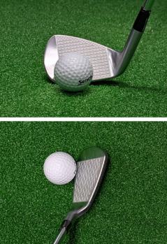 高橋:そうです。フェースが開くとフェースよりネックが飛球線方向に出るから、フェースに当たる前にボールがネックに当たりやすくなります。さらに、スクエアな状態よりもネックがボールに近づくから、ボールと自分の距離がいつも通りでも、前後左右のふたつの方向で、ネックに当たりやすくなるんです。