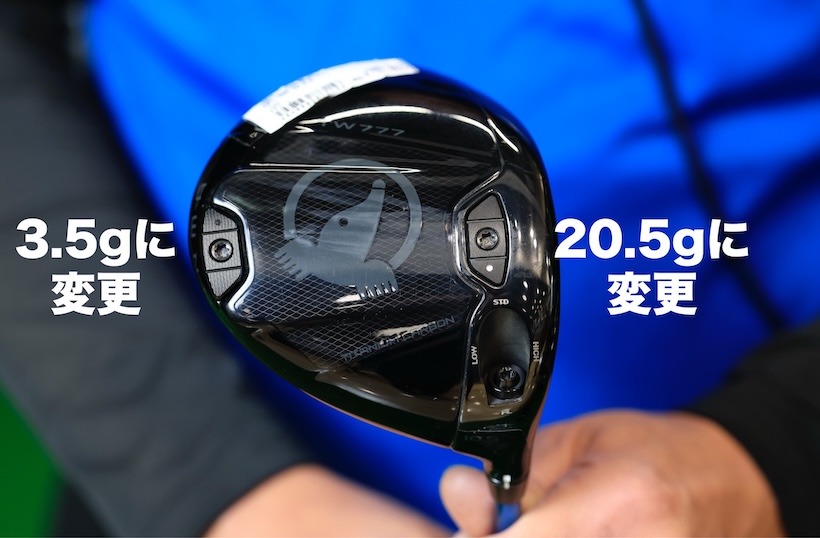 「TW777」を3球打った結果、打ち出し角は抑えられたもののスピンはさほど変わらず。そこで谷合フィッターは待ってましたとばかりに専用レンチを取り出し前後のウェイトを入れ替えた。