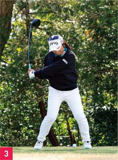 もう一つ、佐久間選手の特徴はテークバックをゆっくり上げること。おそらく今の女子ツアーで最もテークバックのスピードが遅い選手。ゆっくり上げることで手打ちにならず、体全体を使える。それがインパクトでの強さや、フォローまで体が起き上がらないスイングにつながっています。
