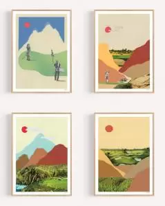 ゴルフをモチーフにしたフランス人アーティスト・Ciel Glueによるアートも阪急初登場。ヴィンテージの雑誌や本、色紙を再利用したコラージュアート。