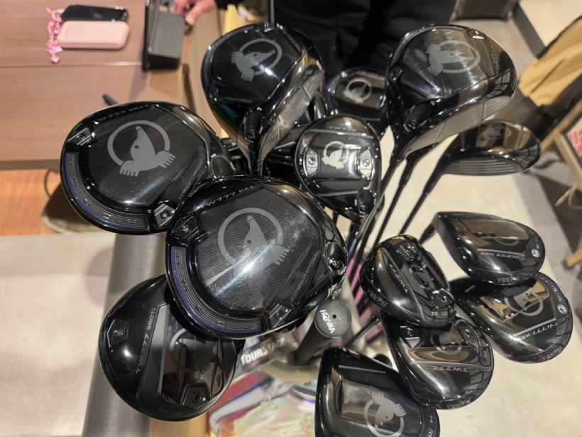 使用クラブは、本間ゴルフの新作「TW777(トリプルセブン)」。途中、ミニドラを打たせていただいたり、別のシャフトを試してみたりとエンジョイモード。