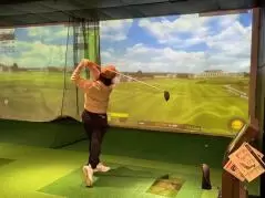 シミュレーションラウンドの舞台は、ゴルファー憧れの「セントアンドリュース オールドコース」。吉川プロは「今日はエンジョイゴルフでいきましょう!」と声をかけてくれ、私たち参加者の緊張を一気にほぐしてくれた。