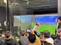 後半はデモンストレーションへ。畑岡選手はドライバーで約280ヤード、大西選手は320ヤードの豪快ショットを披露。しかも撮影OKという大サービス。世界で戦うトッププロのショットを収めようと、全員が携帯を構えていた。