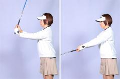2つめはフリスビーを投じるイメージで左腕が動くこと。腕を体の前に振り戻す動きが必要ということになります。この2つがタイミングよく連動すると、クラブが自分の重さで速く下りてきます。振り遅れる傾向の人の場合、腰は回しているけれど腕を振り戻せていないパターンが多いと思います。