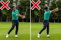 とにかくフォロースルーでクラブを左腰の高さに振り抜くまではカラダと手の距離を絶対に変えないようにしましょう。その流れで左肩くらいの高さまで自然に振り抜かれると考えてください。自分でクラブを振り抜こうと思わないことです。