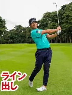 プロたちはアイアンショットを打つとき、基本はフルショットですが、「ライン出し」のショットもよくやります。ライン出しとは飛距離よりも方向の正確性を高めたいときに用いるテクニックで、自分のライン(球筋)でピンを真っすぐ攻めるショットです。