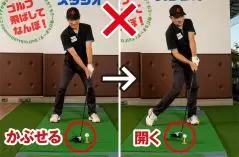フェースをかぶせるとインパクトで手が前に出て振り遅れやすい