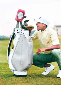 さらに、上品なホワイト×シルバーのキャディバッグがラインナップに加わることで、遊び心とスタイリッシュさを絶妙に両立。個性的なヘッドカバーとのバランスは抜群で、バッグの存在感が一層引き立つ。