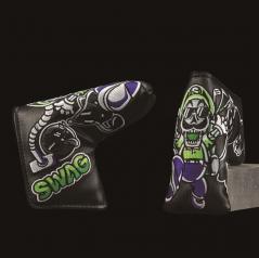 「SWAG GOLF」のアイテムの中では精巧な削り出しパターが人気だが、注目してもらいたいのはヘッドカバー。メーカーコラボや洒落の効いたキャラクターがヘッドカバーやパターカバーという限られたキャンパスの中で楽しく、自由に暴れまくっている。