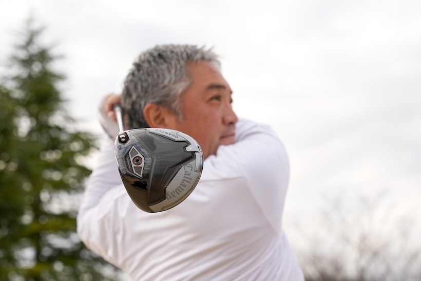 「一発打っただけで前作までのチタンフェースとは明らかに打感が違うことがわかります。『ELYTE』も吸いついて弾く打感でしたが、『QUANTUM』はさらにやわらかさがあって、球筋や弾道をコントロールをしながら飛ばせる感じがあります。ボール初速に関してはやはり一歩先を進んでいるなと感じられます。『TRI-FORCEフェース』は一瞬ボールをフェースに食いつかせてから強く押し出してくれます。また、バランスのよいヘッドで、強振したわけでもないのに加速感が出て、フェースの反発性能との相乗効果でボールスピードをさらに上げてくれます。