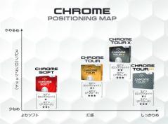また、前作から採用されたシームレス・ツアーエアロの効果を高めるために、さらなる投資を行って製作精度を向上。六角形と円のパターンの縁が均一な高さに仕上がるようになり、着弾範囲のバラつきが減少。ラインナップは、「CHROME TOURボール」 「CHROME TOUR Xボール」 「CHROME SOFTボール」の3種類。いずれも、それぞれの特徴をキープしつつ、多方面でパフォーマンスを高めた製品となっている。