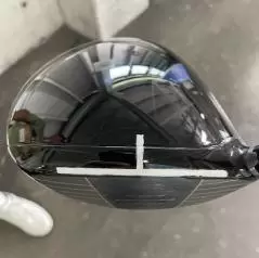 写真をご覧になればわかるように。クラウンの最前部。フェースとの境い目あたりにフェース面と平行に長い線が。その真ん中あたりの、スイートエリアの真上と思われる位置に直角に短い線が引かれていました。