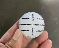 そこでキャロウェイのツアー担当に聞いたところ「柏原選手はドライバーショットではフェースの向きを合わせることに集中するので、ツアーレップがサインペンで書きました。真っすぐ書くのは結構大変なんですよ」と教えてくれました。