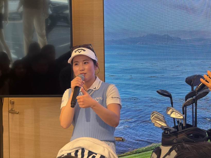 小さな女の子からの「練習を頑張るには?」という質問には、「小さな目標を立てて、達成したらご褒美をもらうこと」とし、自身も小学生の頃、頑張ったご褒美にオデッセイのパターを買ってもらった思い出を明かした。キャロウェイ愛も炸裂。