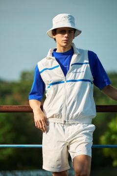 背中から肩回りの可動域を妨げないパターンを採用したポロシャツや、スウェットとニット素材を組み合わせた軽さのあるフーディなど、身体の動きに追従するフィット感や、季節を問わず快適性を高めるための機能や素材を取り入れながら、90年代にスポーツブランドやアウトドアブランドで見られたビビットなカラーリングに、上品で洗練されたフレンチテイストを加えたプレップスタイルをベースに今コレクションを構成。