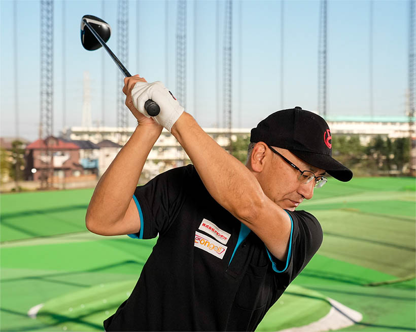 左ヒジを軽く曲げるのはいいとしても、曲げすぎはよくありません。カラダを回さないで手上げになり、トップで左ヒジが大きく折れるのは絶対にダメです。飛ばしのパワーがたまらないし、手打ちになってヘッドスピードが上がらないからです。