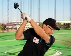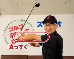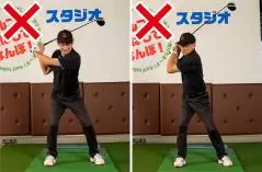 左ヒジを少しくらい曲げてもいいと思い込むとバックスイングでラクをしてしまい、次第に手上げとなって捻転が不足しやすいので、そこは十分に注意してください。飛ばすならバックスイングではカラダを絞るような捻転感覚が絶対に必要です。