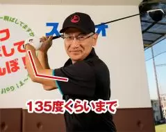トップで左ヒジが90度も折れてしまうのは曲げすぎですから、45度くらいプラスして「合計135度くらいまで」が許容範囲です。