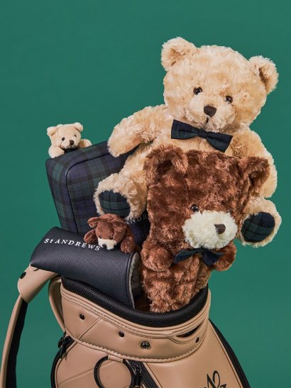 定番のベージュのテディベア「アンドリュー」も、装い新たにリニューアル。人気のヘッドカバー、カートバッグなど全19種のゴルフアクセサリーが登場。