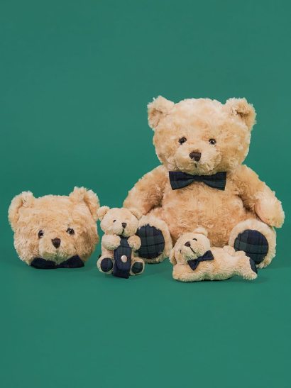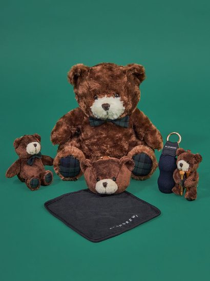 クラシックなタータンチェックを纏った、テディベアヘッドカバーの新作。上質な素材感と洗練されたディテールが、愛らしさの中にラグジュアリーな存在感を与える。